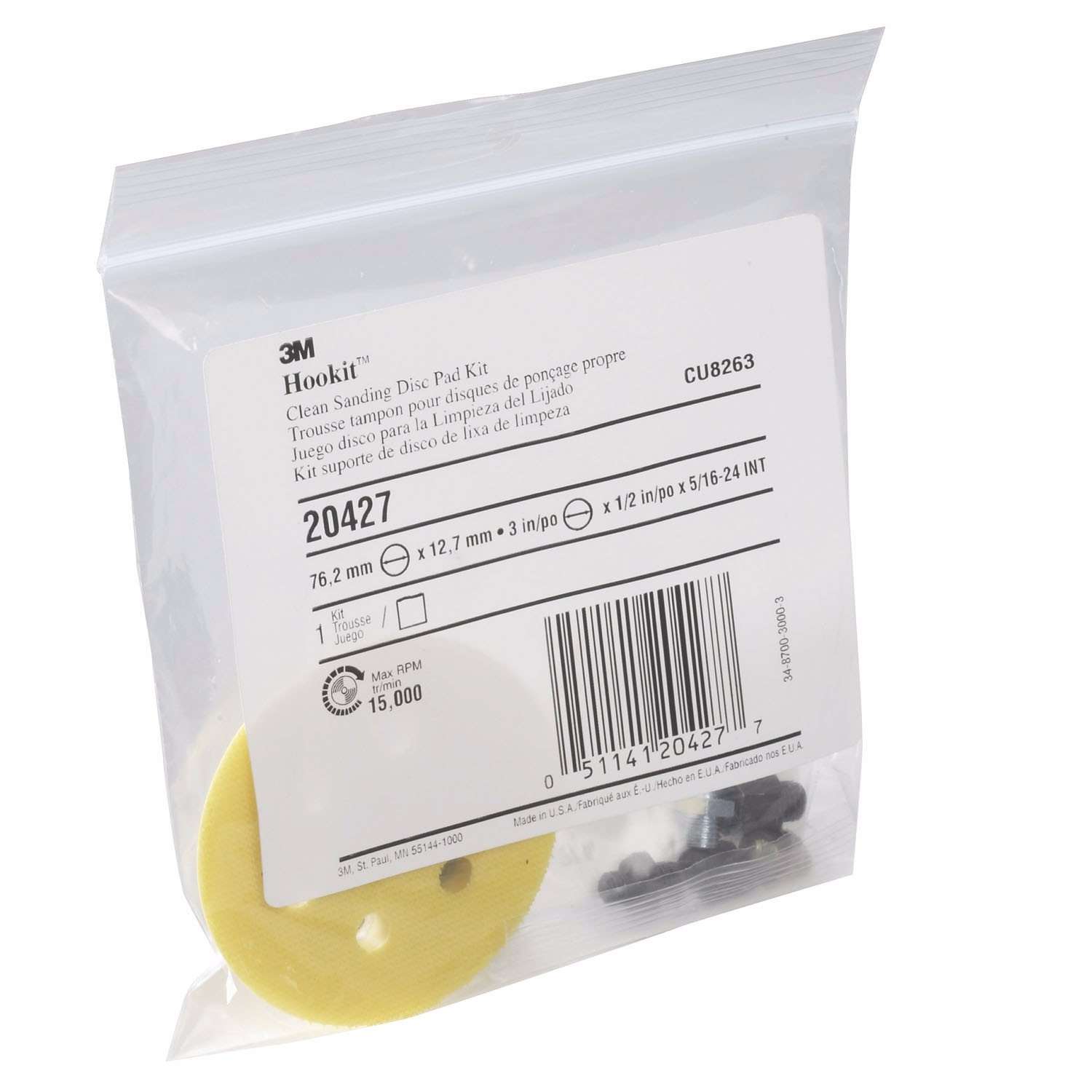 El respaldo de disco con extracción de polvo Hookit? (Lijado Limpio), es construído con material de espuma. El respaldo en sí tiene una cavidad de 5/16 con 24 roscas por pulgada y en el juego incluyen cinco adaptadores que lo convierten a tornillo de 1/4 con 20 roscas por pulgada, cavidad de 1/4 con 20 roscas por pulgada, tornillo de 1/4 con 28 roscas por pulgada, tornillo de 5/16 con 24 roscas por pulgada, o tornillo de 6 mm con 1 mm entre roscas.