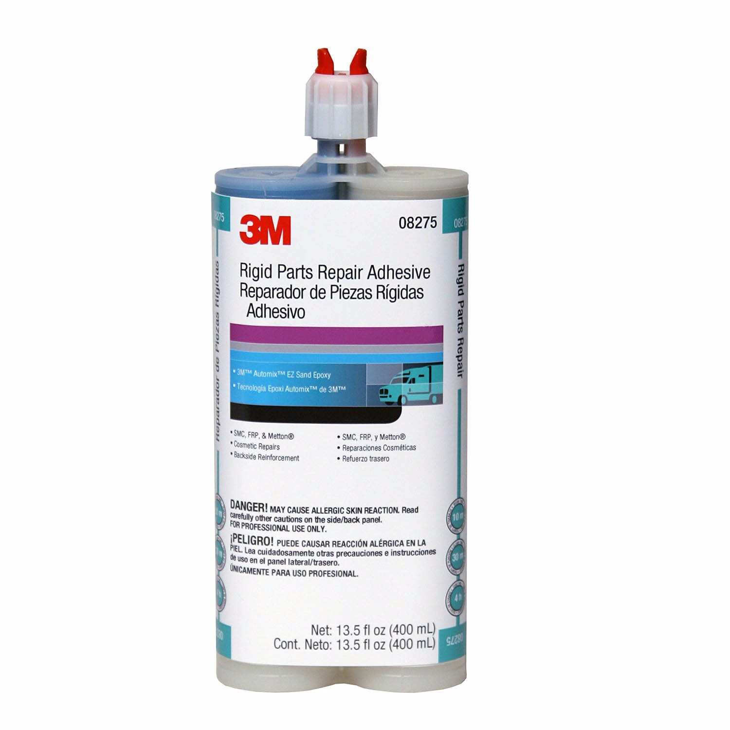 Se usan dos partes de epóxico para reparar SMC - hoja de compuesto moldeado, y FRP - fibra de vidrio automotríz y otras partes rígidas de plástico. Es una elección excelente para reparaciones cosméticas. Permita hasta 10 minutos para tiempo de trabajo, 30 minutos para tiempo de lijar y hasta 4 horas para tiempo de curar. Está diseñado para ser un rellenador y adhesivo.Un adhesivo de epóxico de dos componentes y alto rendimiento.Se usa para reparar SMC - hoja de compuesto moldeado - y FRP - fibra de vidrio automotríz - y otras piezas plásticas rígidas. Es una elección excelente para reparaciones cosméticas.Se usa con la pistola aplicadora manual superior, 08284, y la boquilla estática de mezcla 08193 de 3M.