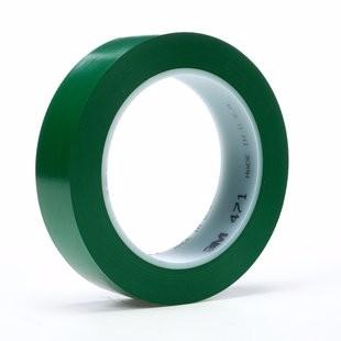 La 3M® Cinta de Vinil 471 Verde, 5.2 mil (0.13 mm), soporte de Vinil con adhesivo de caucho, mantiene el color incluso cuando se expone a abrasiones intensas, conformable, propiedades especiales de estiramiento que proporcionan líneas más rectas, remoción limpia, buena resistencia a los solventes.