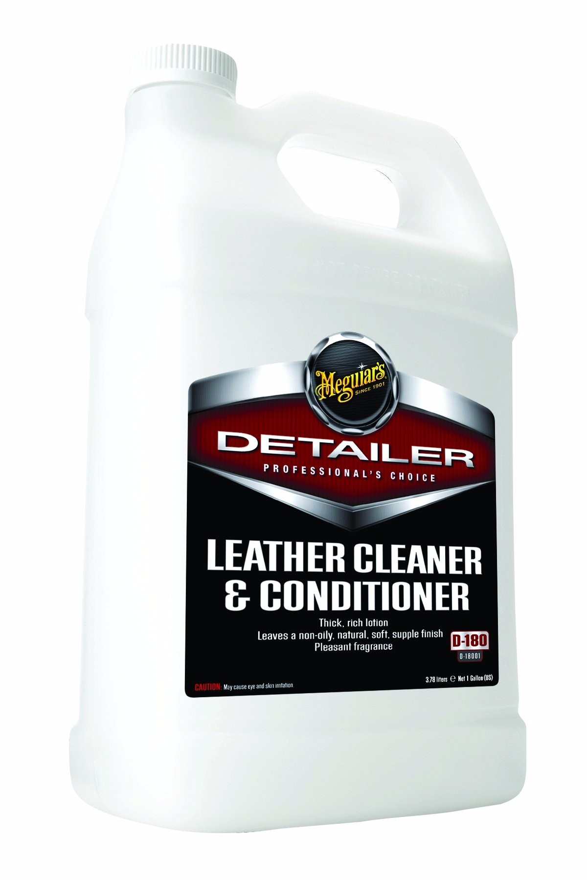 El D180 Detailer Leather Cleaner & Conditioner de Meguiar's® está formulado expresamente para mejorar la apariencia del cuero interior y superficies de vinilo. Los agentes de limpieza y acondicionamiento especializados estan diseñados para limpiar y para restaurar con seguridad la apariencia original y flexibilidad del cuero. Deja un acabado natural, no aceitoso, suave y flexible.