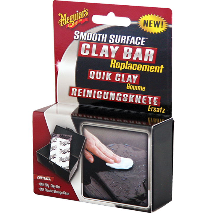 Para los aficionados que ya tienen el Meguiar's Clay Kit y quieren la conveniencia de comprar sólo la barrita de barro, ofrecemos el reemplazo de barra de arcilla de superficie lisa. La eliminación de contaminantes por encima de la superficie adherida y restaurar una superficie lisa a su acabado de pintura se logra fácilmente mediante el uso de la barra de arcilla de superficie lisa. Nuestra barrita de arcilla no abrasiva elimina con facilidad e instantáneamente los contaminantes adheridos mientras lo frota a través de la superficie de su coche usando el Quik Detailer de Meguiar como lubricante.